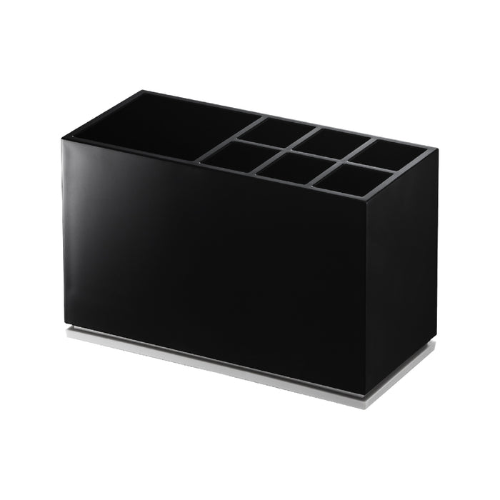 Diese Box bietet viel Stauraum für Make-up und andere Kleinigkeiten. Das Stahlgehäuse verfügt über eine flexibel einsetzbare Trennwand, während der Holzdeckel den Inhalt verbirgt und für ein aufgeräumtes Erscheinungsbild sorgt.