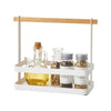 Questo portaspezie valorizza la cucina offrendo spazio aggiuntivo. Con tappetino in silicone rimovibile, struttura in acciaio resistente e maniglia in legno, unisce stabilità, praticità e un tocco di stile elegante.